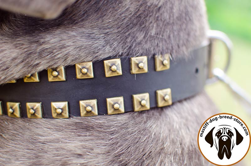 Leather Mastiff Collar with Goldish Square Studs with Dots